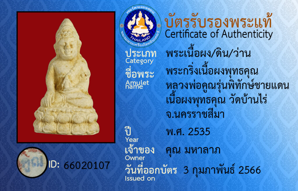 Amulet name : pra kring luangpor koon wat ban rai