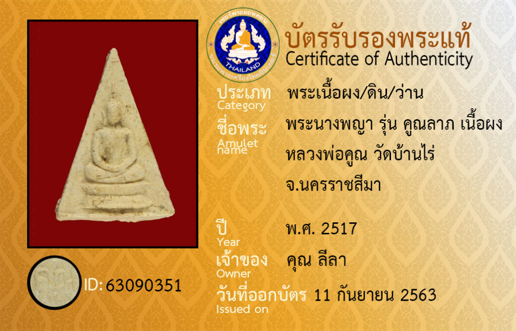 ชื่อพระ : พระนางพญา รุ่น คูณลาภ เนื้อผง หลวงพ่อคูณ วัดบ้านไร่ จ.นครราชสีมา