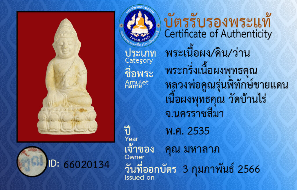ชื่อพระ : พระกริ่งเนื้อผงพุทธคุณ หลวงพ่อคูณ รุ่นพิทักษ์ชายเเดน เนื้อผงพุทธคุณ วัดบ้านไร่ จ.นครราชสีมา