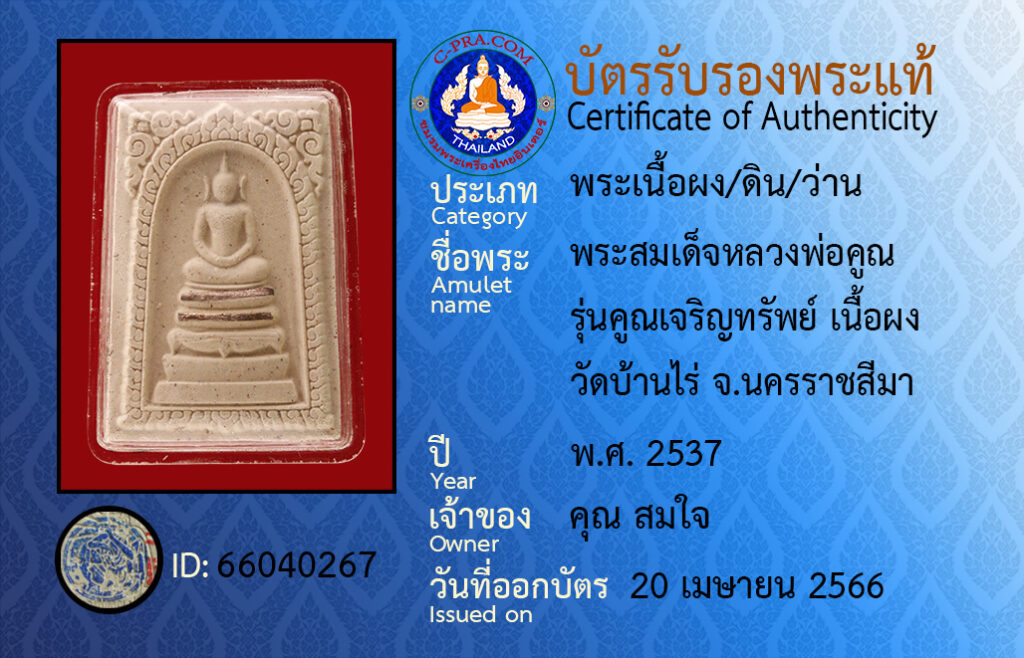 ชื่อพระ :พระสมเด็จหลวงพ่อคูณ รุ่นคูณเจริญทรัพย์ เนื้อผง วัดบ้านไร่ จ.นครราชสีมา