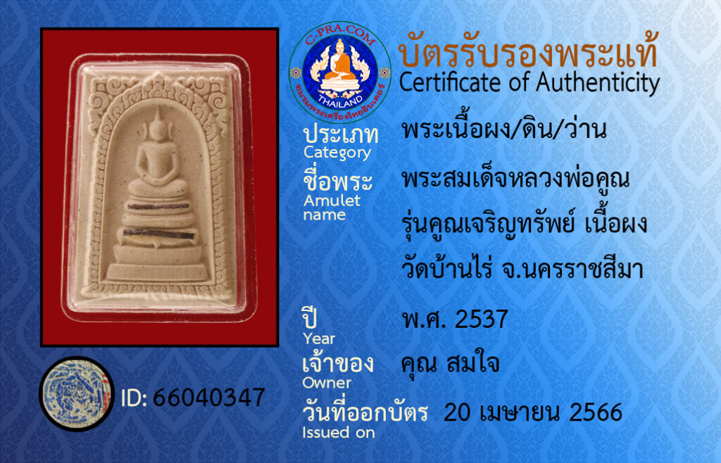 ชื่อพระ :พระสมเด็จหลวงพ่อคูณ รุ่นคูณเจริญทรัพย์ เนื้อผง วัดบ้านไร่ จ.นครราชสีมา