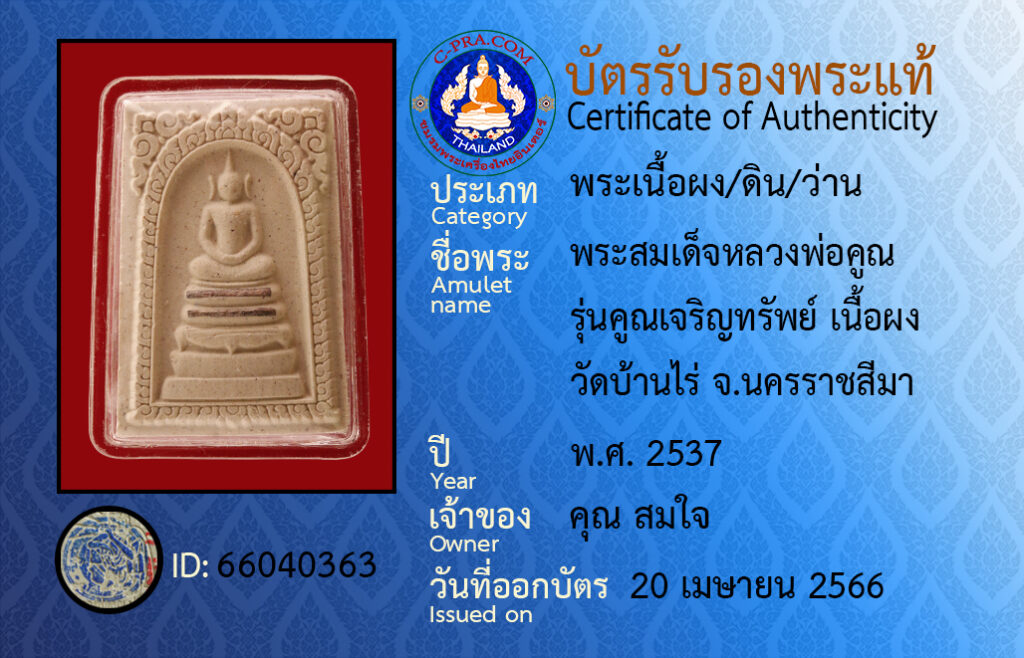 ชื่อพระ :พระสมเด็จหลวงพ่อคูณ รุ่นคูณเจริญทรัพย์ เนื้อผง วัดบ้านไร่ จ.นครราชสีมา
