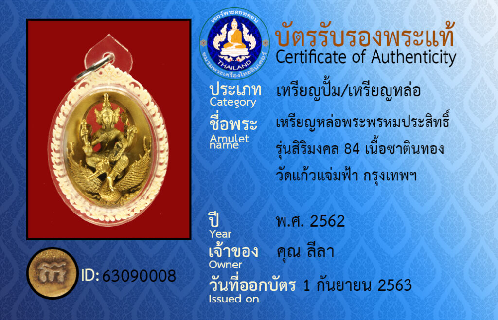 ชื่อพระ : เหรียญหล่อพระพรหมประสิทธิ์ รุ่นสิริมงคล 84 เนื้อซาตินทอง วัดแก้วแจ่มฟ้า กรุงเทพฯ