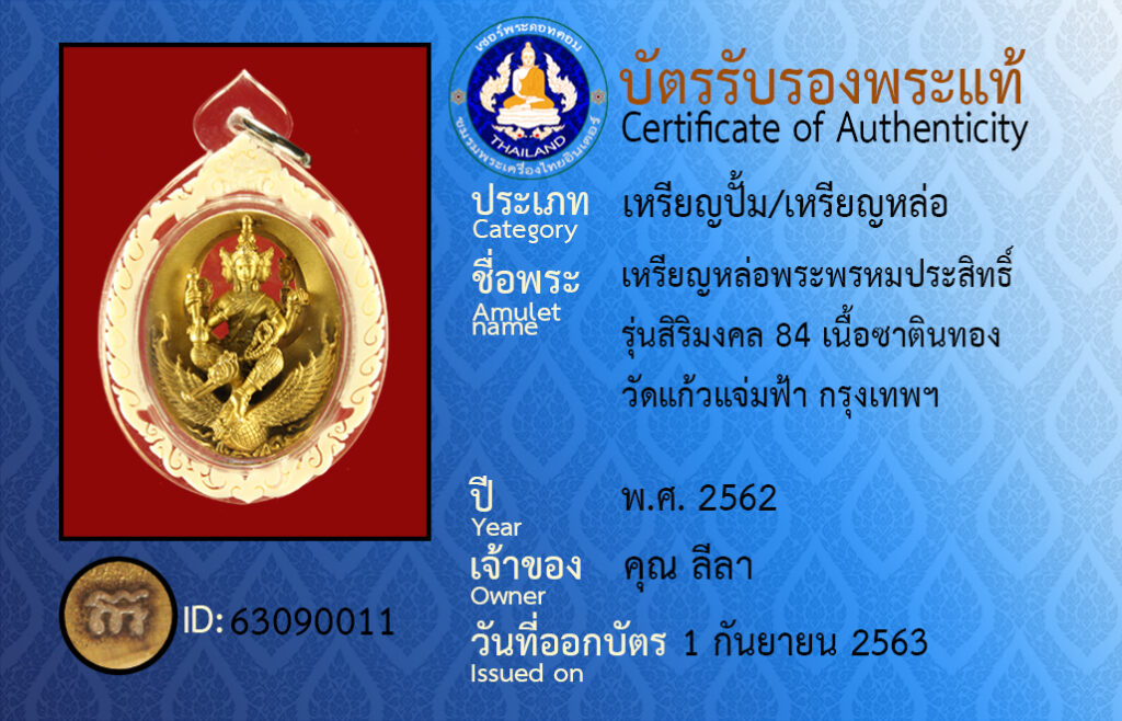 ชื่อพระ : เหรียญหล่อพระพรหมประสิทธิ์ รุ่นสิริมงคล 84 เนื้อซาตินทอง วัดแก้วแจ่มฟ้า กรุงเทพฯ