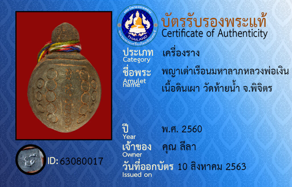 ชื่อพระ : พญาเต่าเรือนมหาลาภหลวงพ่อเงินเนื้อดินเผา วัดท้ายน้ำ จ.พิจิตร