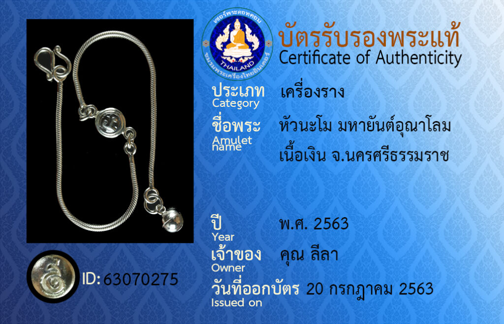 ชื่อพระ : หัวนะโม มหายันต์อุณาโลม เนื้อเงิน จ.นครศรีธรรมราช