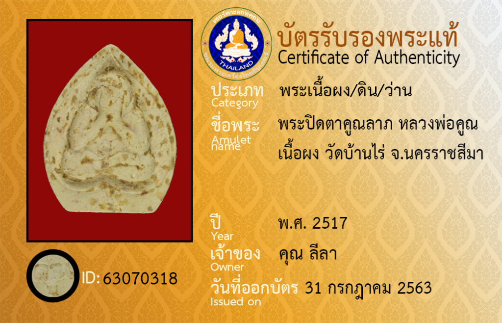 ชื่อพระ : พระปิดตาคูณลาภ หลวงพ่อคูณ เนื้อผง วัดบ้านไร่ จ.นครราชสีมา
