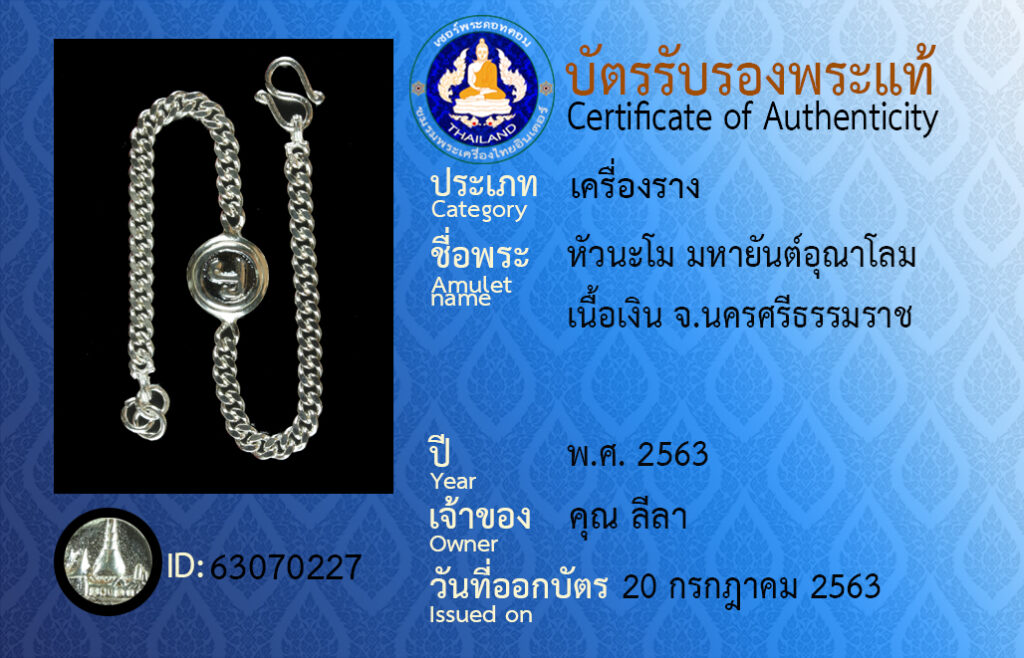 ชื่อพระ : หัวนะโม มหายันต์อุณาโลม เนื้อเงิน จ.นครศรีธรรมราช