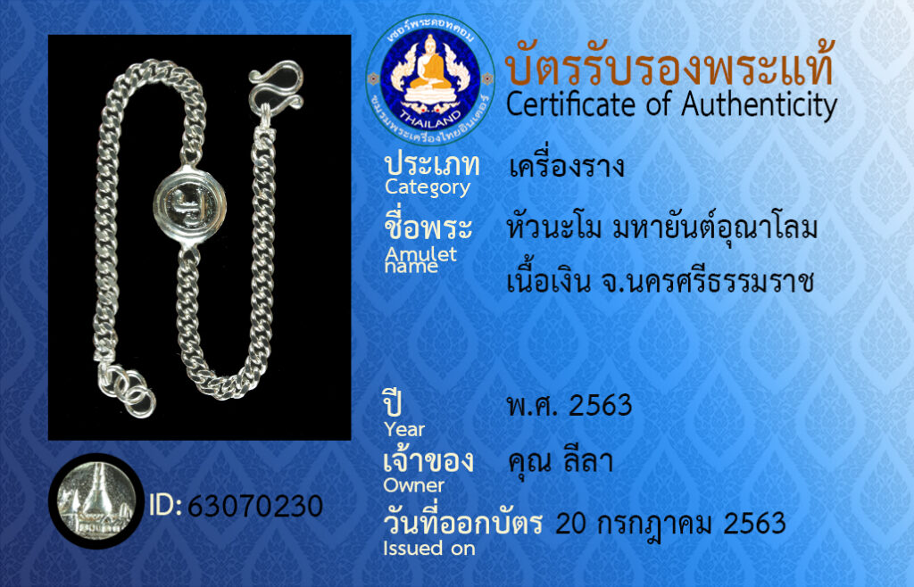 ชื่อพระ : หัวนะโม มหายันต์อุณาโลม เนื้อเงิน จ.นครศรีธรรมราช