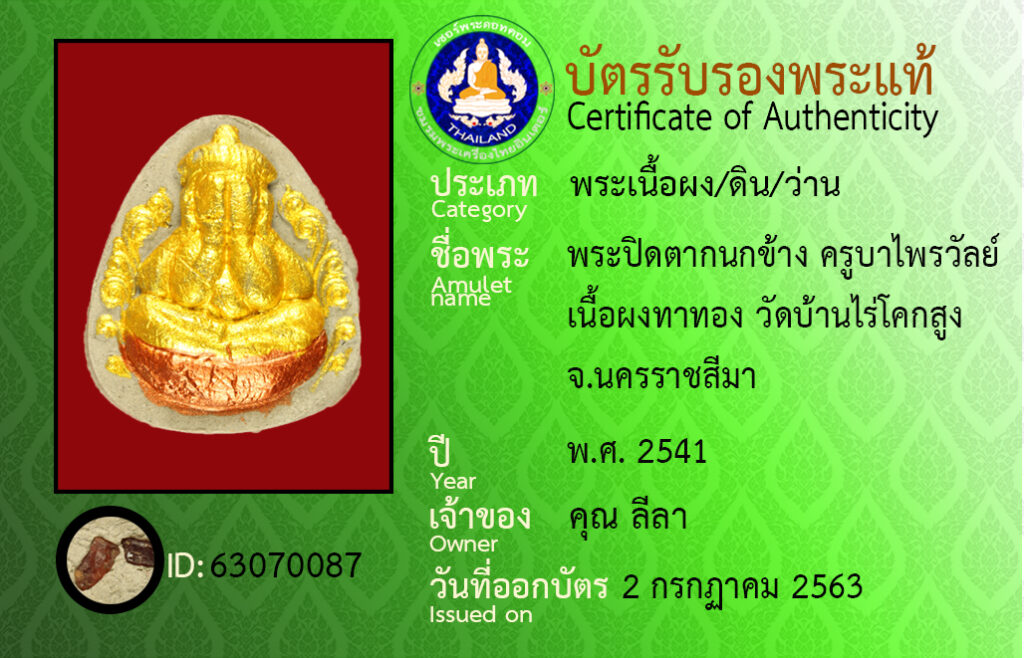 ชื่อพระ : พระปิดตา ครูบาไพรวัลย์ เนื้อผงทาทอง วัดบ้านไร่โคกสูง จ.นครราชสีมา