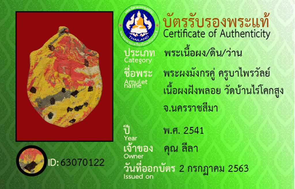 Amulet name : phra pong mang gon koo, kroo ba pai wan, wat ban rai khok soong