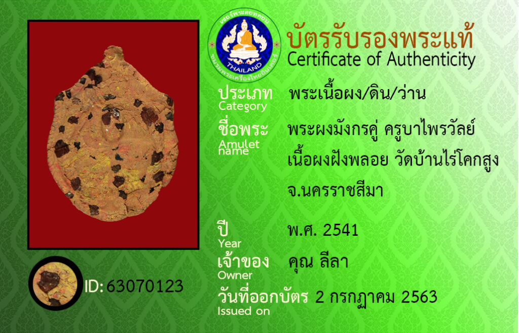 Amulet name : phra pong mang gon koo, kroo ba pai wan, wat ban rai khok soong
