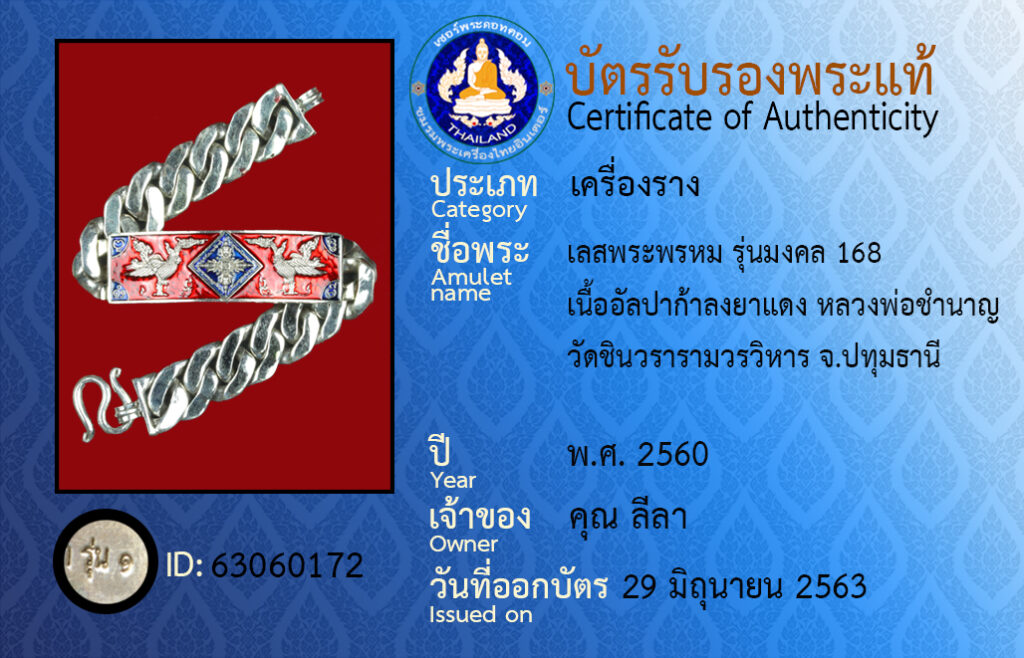ชื่อพระ : เลสพระพรหม รุ่นมงคล 168เนื้ออัลปาก้าลงยาแดง หลวงพ่อชำนาญ วัดชินวรารามวรวิหาร จ.ปทุมธานี