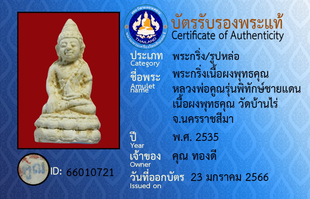 ชื่อพระ : พระกริ่งเนื้อผงพุทธคุณ หลวงพ่อคูณ รุ่นพิทักษ์ชายเเดน เนื้อผงพุทธคุณ วัดบ้านไร่ จ.นครราชสีมา
