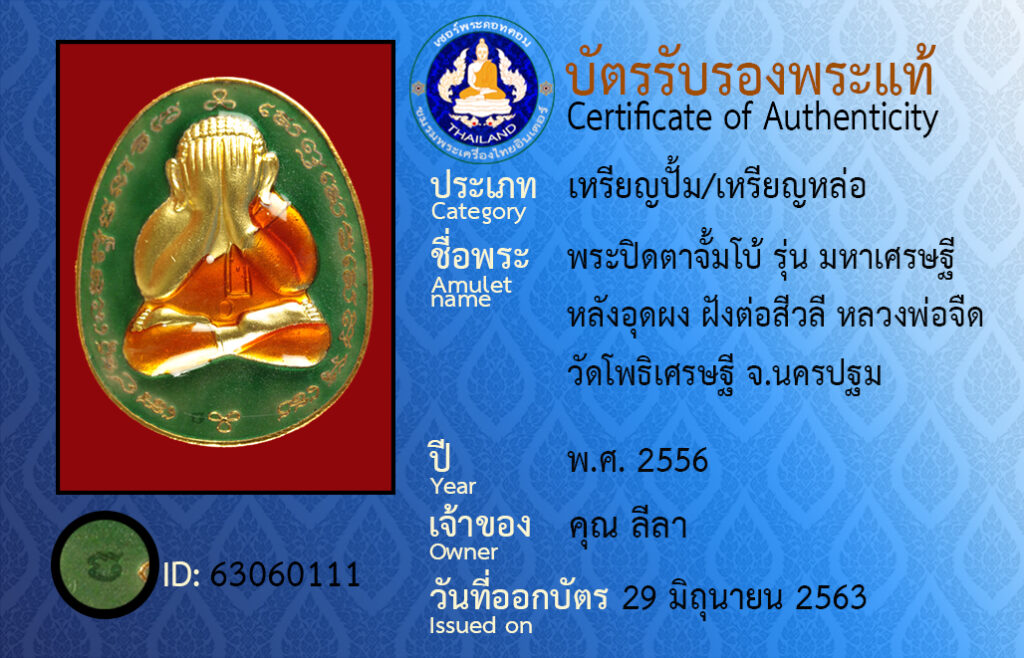 Amulet name : prapidta luangpojeut,watpotisayttee