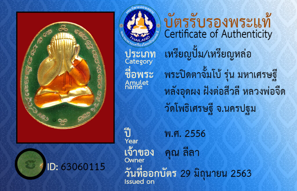 Amulet name : prapidta luangpojeut,watpotisayttee