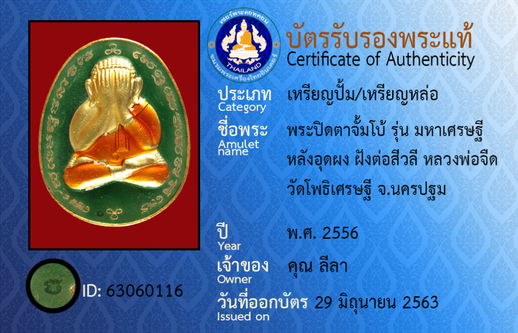 Amulet name : prapidta luangpojeut,watpotisayttee