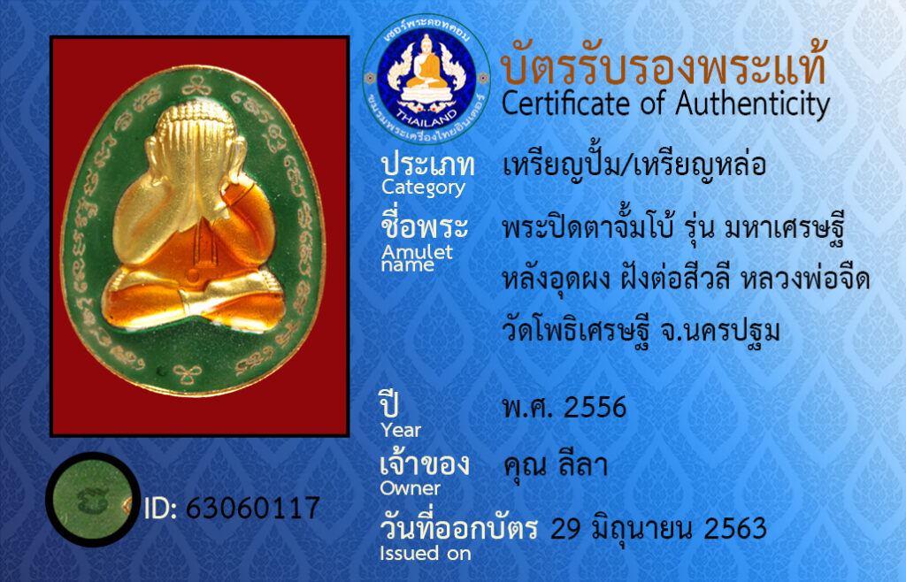 Amulet name : prapidta luangpojeut,watpotisayttee