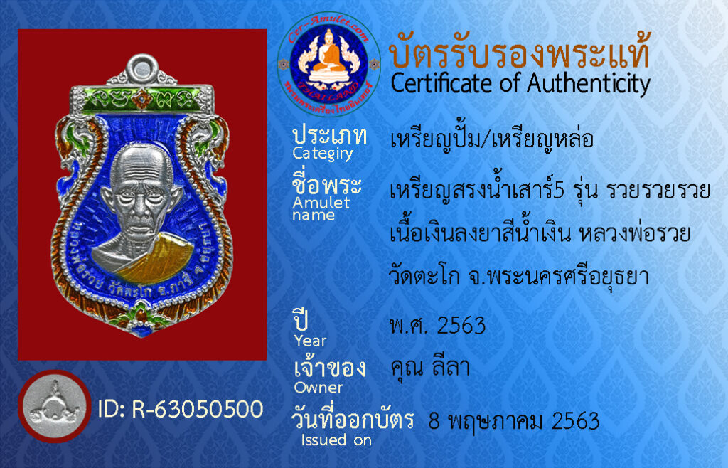 ชื่อพระ : เหรียญสรงน้ำเสาร์5 รุ่น รวยรวยรวย เนื้อเงินลงยาน้ำเงิน หลวงพ่อรวย วัดตะโก จ.พระนครศรีอยุธยา