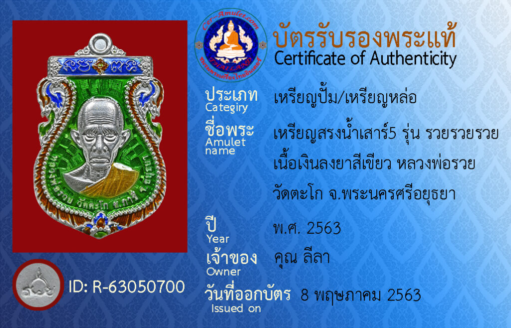 ชื่อพระ : เหรียญสรงน้ำเสาร์5 รุ่น รวยรวยรวย เนื้อเงินลงยาเขียว หลวงพ่อรวย วัดตะโก จ.พระนครศรีอยุธยา