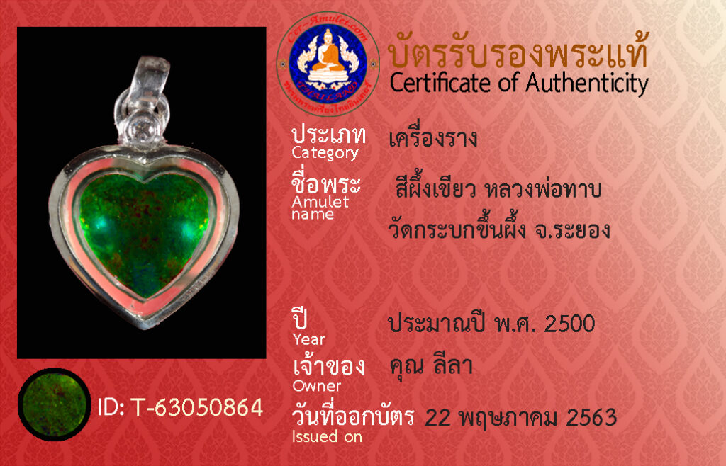 ชื่อพระ : สีผึ้งเขียว หลวงพ่อทาบ วัดกระบกขึ้นผึ้ง จ.ระยอง