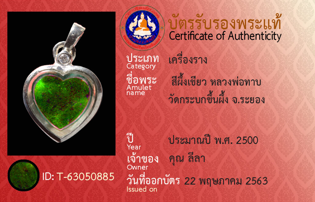 ชื่อพระ : สีผึ้งเขียว หลวงพ่อทาบ วัดกระบกขึ้นผึ้ง จ.ระยอง