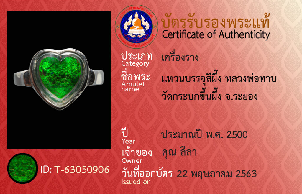 ชื่อพระ : แหวนบรรจุสีผึ้ง หลวงพ่อทาบ วัดกระบกขึ้นผึ้ง จ.ระยอง