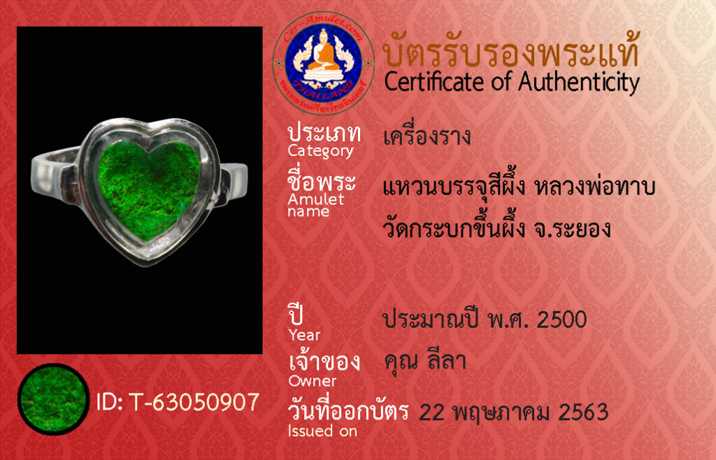 ชื่อพระ : แหวนบรรจุสีผึ้ง หลวงพ่อทาบ วัดกระบกขึ้นผึ้ง จ.ระยอง