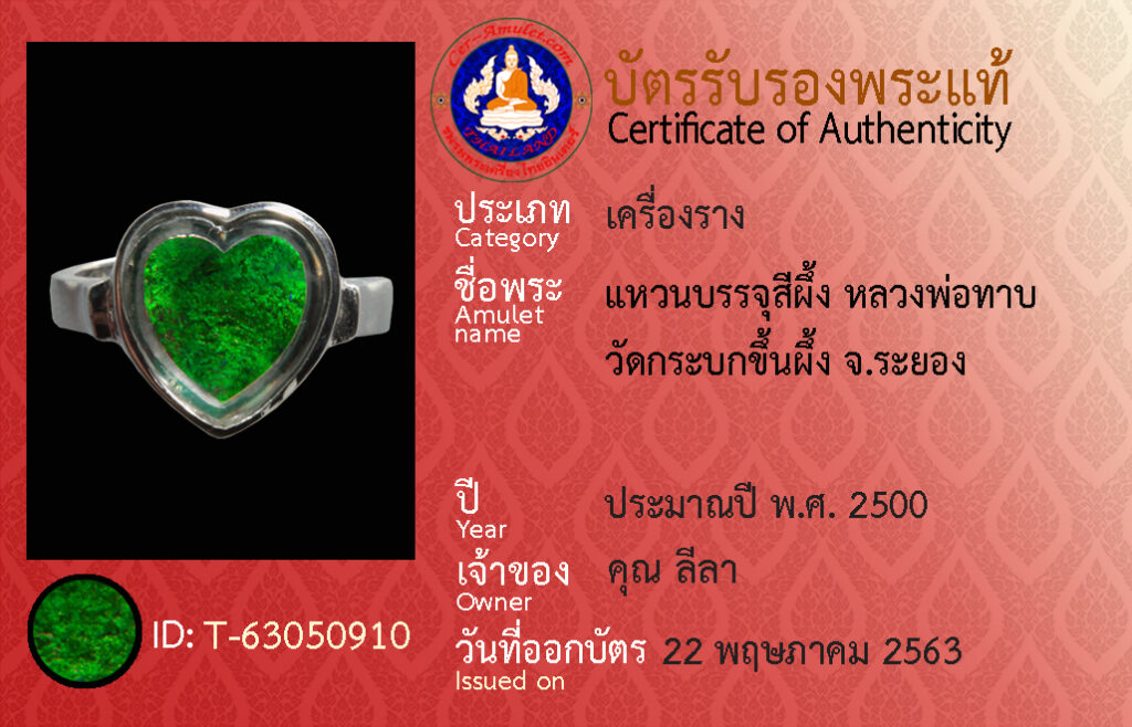 ชื่อพระ : แหวนบรรจุสีผึ้ง หลวงพ่อทาบ วัดกระบกขึ้นผึ้ง จ.ระยอง