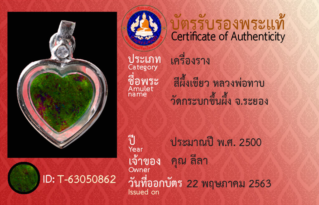 ชื่อพระ : สีผึ้งเขียว หลวงพ่อทาบ วัดกระบกขึ้นผึ้ง จ.ระยอง
