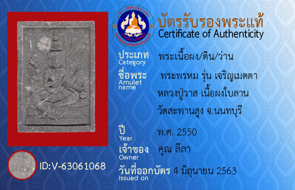 Amulet name : Longpo Wad,Brahma,Watsapansoong,Nonthaburi province,Thailand