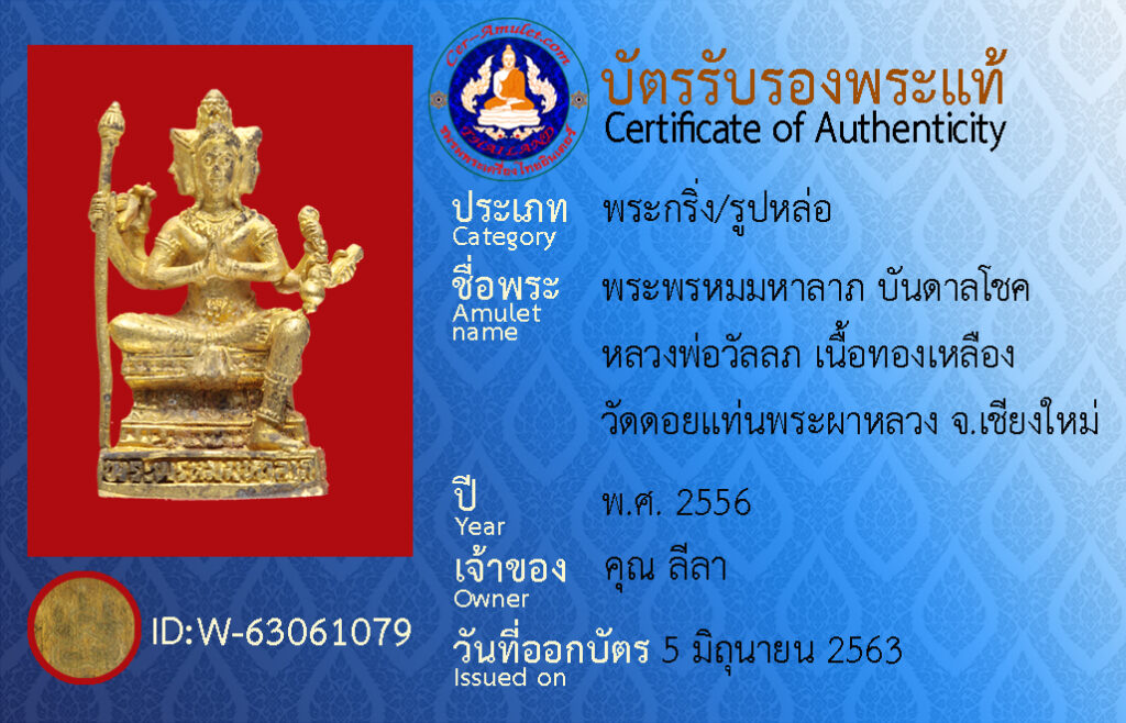ชื่อพระ : พระพรหมมหาลาภ บันดาลโชค หลวงพ่อวัลลภ เนื้อทองเหลือง วัดดอยแท่นพระผาหลวง จ.เชียงใหม่