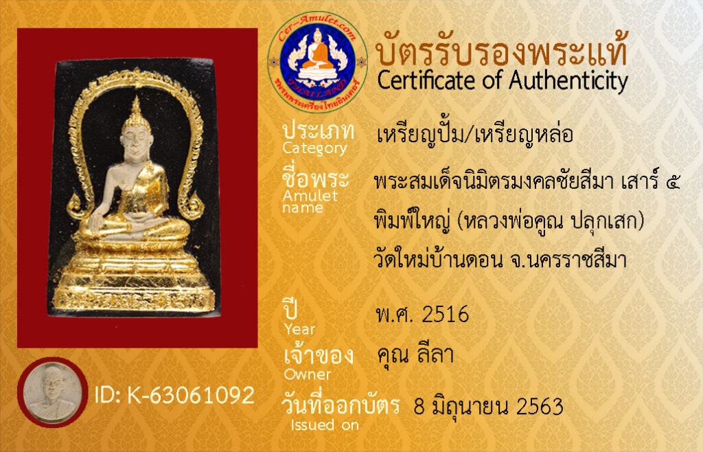 ชื่อพระ : พระสมเด็จนิมิตรมงคลชัยสีมา เสาร์ ๕ พิมพ์ใหญ่ (หลวงพ่อคูณ ปลุกเสก) วัดใหม่บ้านดอน จ.นครราชสีมา