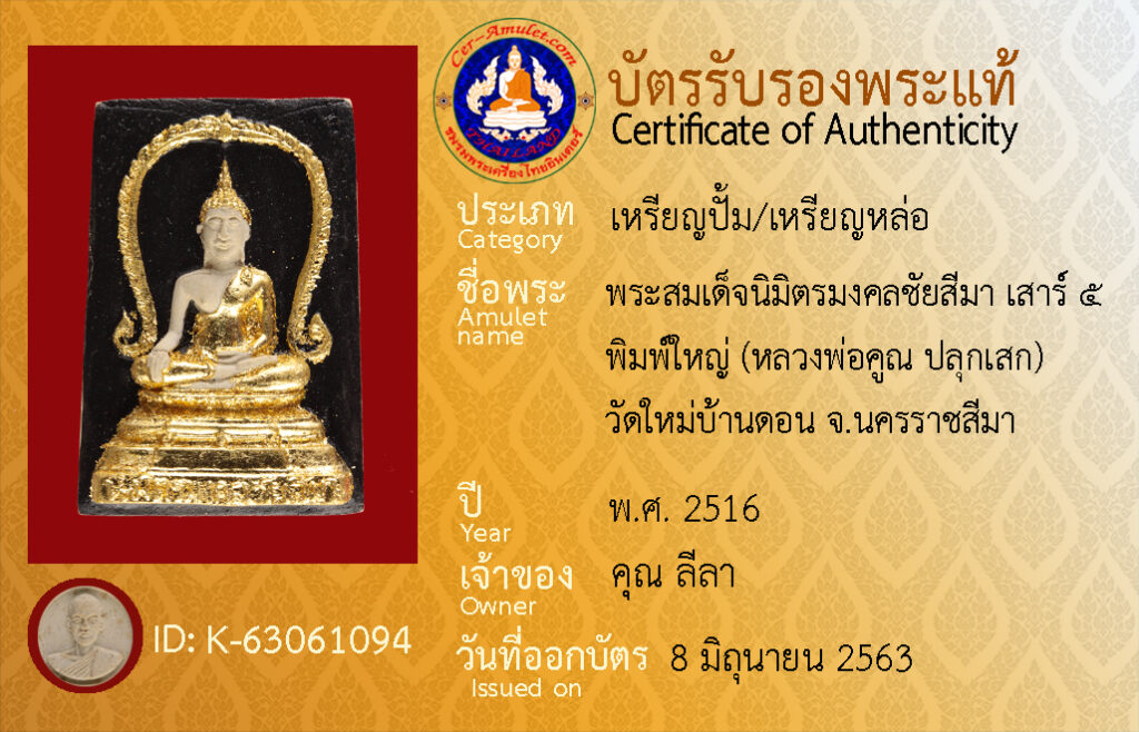 ชื่อพระ : พระสมเด็จนิมิตรมงคลชัยสีมา เสาร์ ๕ พิมพ์ใหญ่ (หลวงพ่อคูณ ปลุกเสก) วัดใหม่บ้านดอน จ.นครราชสีมา