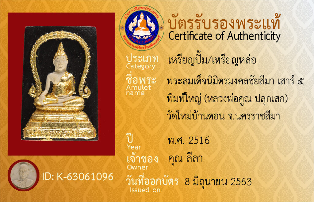 ชื่อพระ : พระสมเด็จนิมิตรมงคลชัยสีมา เสาร์ ๕ พิมพ์ใหญ่ (หลวงพ่อคูณ ปลุกเสก) วัดใหม่บ้านดอน จ.นครราชสีมา