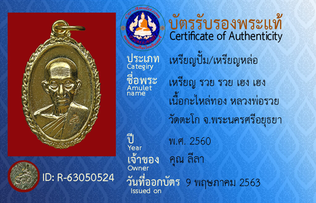 ชื่อพระ : เหรียญ รวย รวย เฮง เฮง เนื้อกะไหล่ทอง หลวงพ่อรวย วัดตะโก จ.พระนครศรีอยุธยา