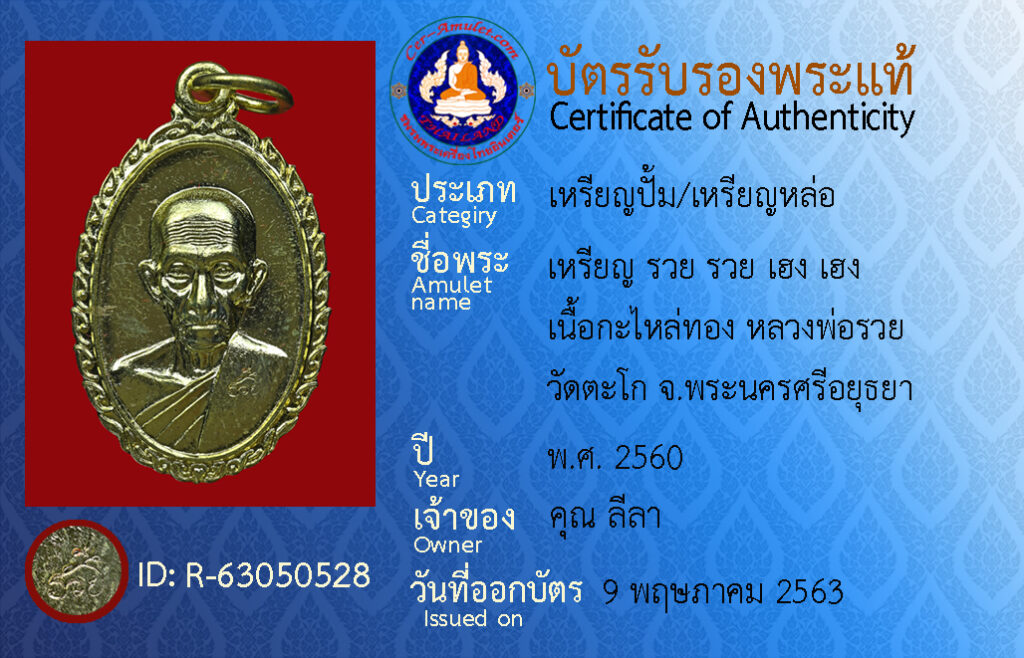 ชื่อพระ : เหรียญ รวย รวย เฮง เฮง เนื้อกะไหล่ทอง หลวงพ่อรวย วัดตะโก จ.พระนครศรีอยุธยา