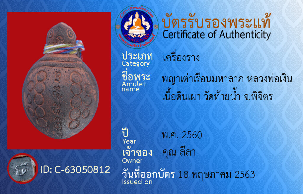 ชื่อพระ : พญาเต่าเรือนมหาลาภ หลวงพ่อเงิน เนื้อดินเผา วัดท้ายน้ำ จ.พิจิตร