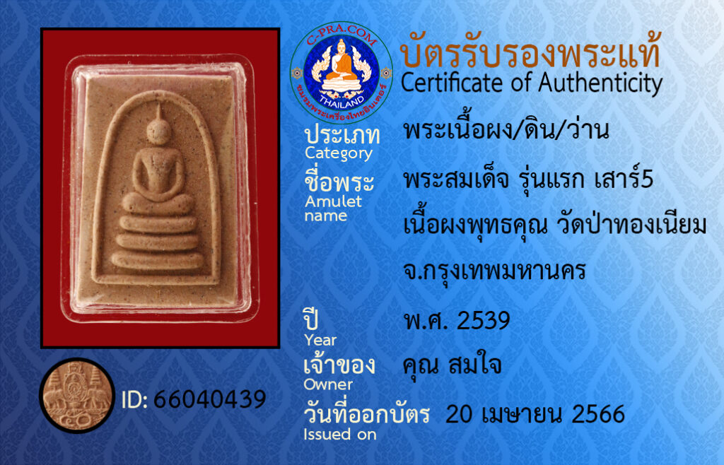 Amulet name : Prasomdet, Run raek sao5, Neua pongputtakun, Watpatongniam, Bangkok.