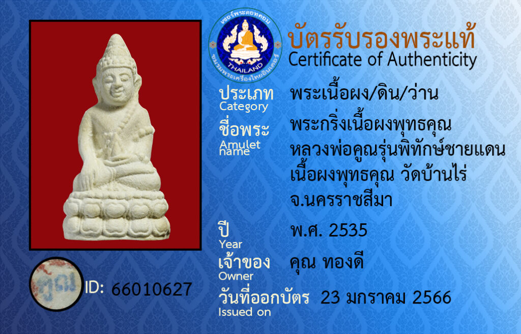 ชื่อพระ : พระกริ่งเนื้อผงพุทธคุณ หลวงพ่อคูณ รุ่นพิทักษ์ชายเเดน เนื้อผงพุทธคุณ วัดบ้านไร่ จ.นครราชสีมา