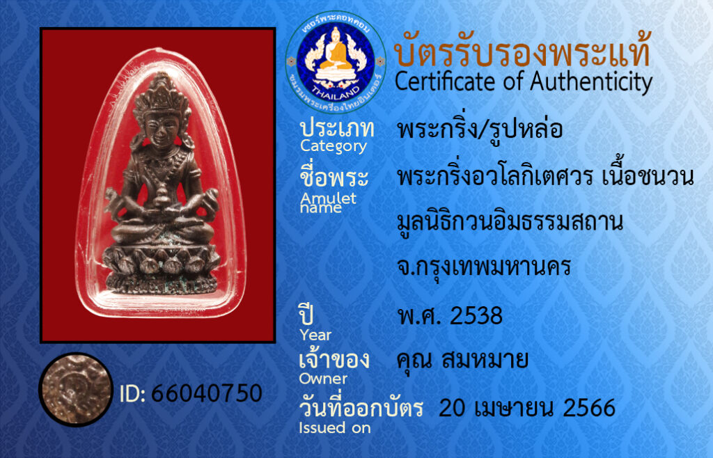 ชื่อพระ :พระกริ่งอวโลกิเตศวร เนื้อชนวน มูลนิธิกวนอิมธรรมสถาน จ.กรุงเทพมหานคร