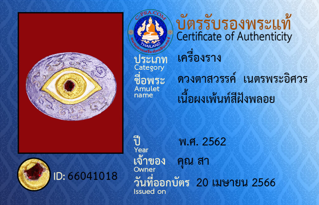 Amulet name : Duang ta, Sawan, Net praisuan, Neuapong, Pensee, Fangploy.
