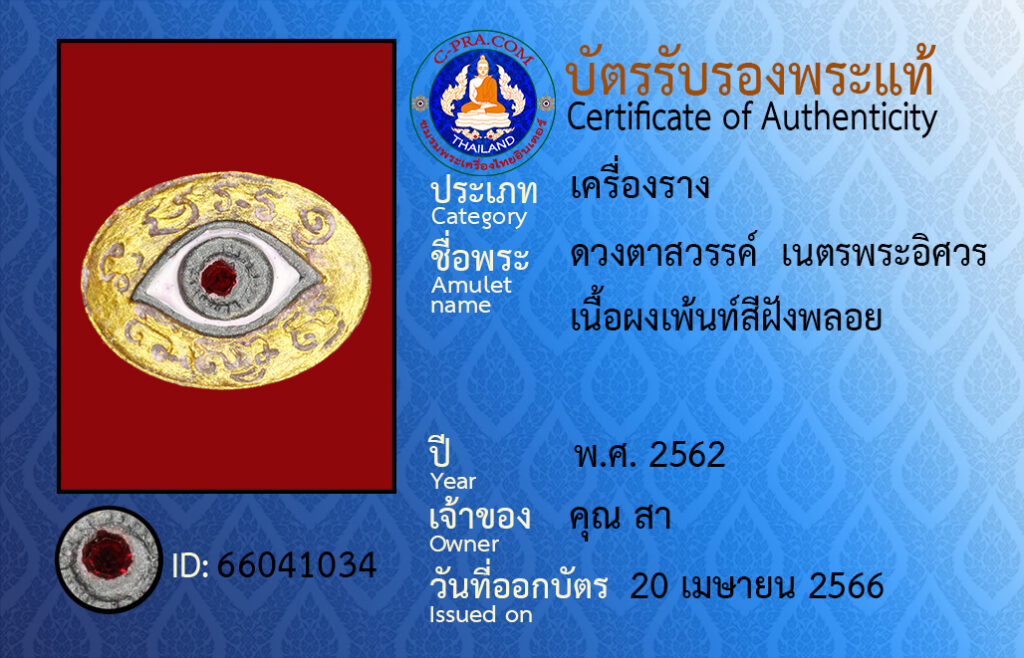 ชื่อพระ :ดวงตาสวรรค์ เนตรพระอิศวร เนื้อผงเพ้นท์สีฝังพลอย