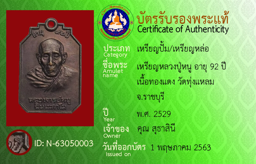 佛牌名称 : 龙婆怒自身像 背面哈努曼 纪念 92 岁版 瓦腾连 叻丕府 泰国