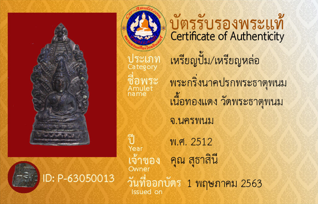 ชื่อพระ : พระกริ่งนาคปรกพระธาตุพนม เนื้อทองแดงรมดำ วัดพระธาตุพนม จ.นครพนม