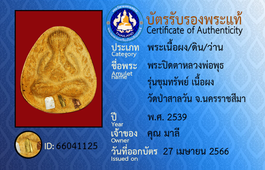 Amulet name : name : Phra pid ta, Luang por put, Run kum sap, Neua pong, Watpasalawan, nakonratseema
