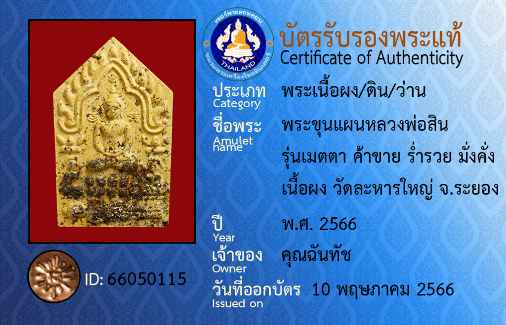 ชื่อพระ : พระขุนแผนหลวงพ่อสิน รุ่นเมตตา ค้าขาย ร่ำรวย มั่งคั่ง เนื้อผง วัดละหารใหญ่ จ.ระยอง