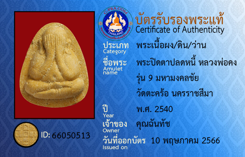ชื่อพระ : พระปิดตาปลดหนี้ หลวงพ่อคง รุ่น9 มหามงคลชัย วัดตะคร้อ นครราชสีมา