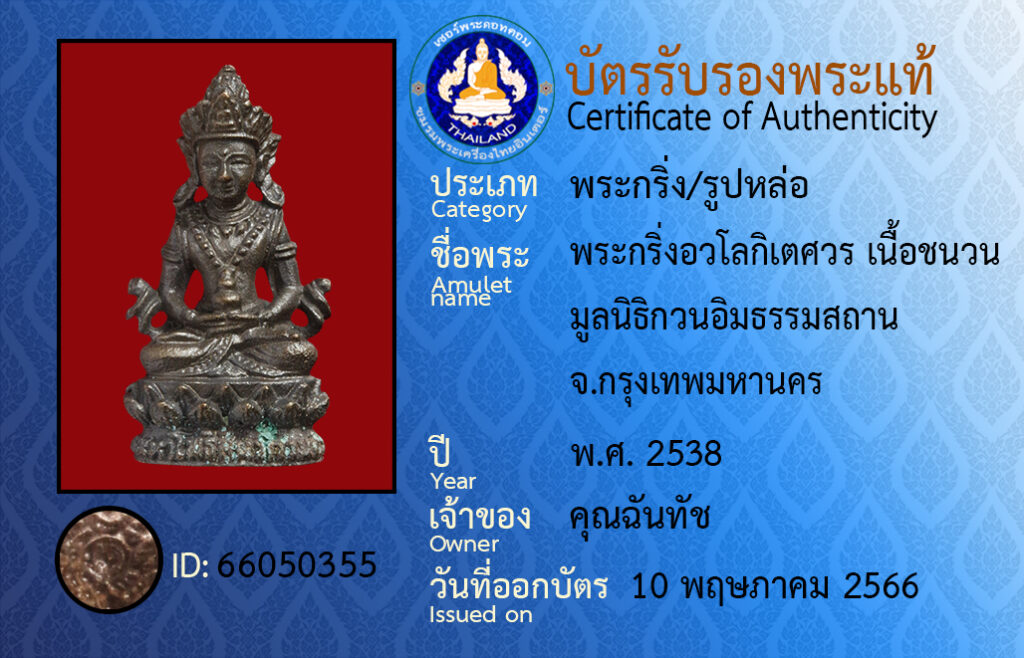 ชื่อพระ :พระกริ่งอวโลกิเตศวร เนื้อชนวน มูลนิธิกวนอิมธรรมสถาน จ.กรุงเทพมหานคร