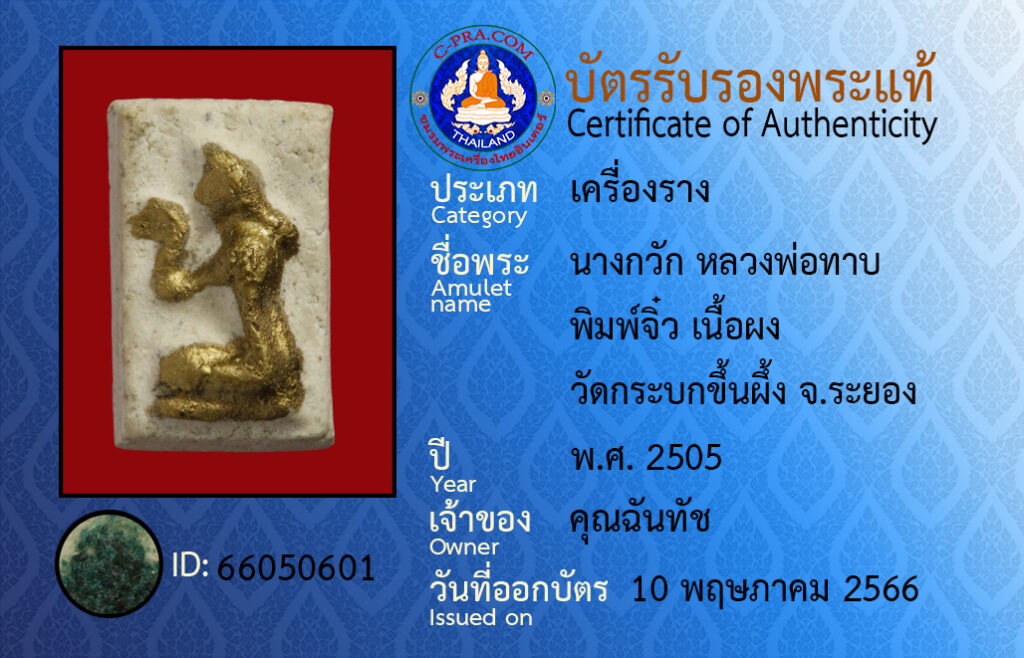 ชื่อพระ :นางกวัก หลวงพ่อทาบ พิมพ์จิ๋ว เนื้อผง วัดกระบกขึ้นผึ้ง จ.ระยอง